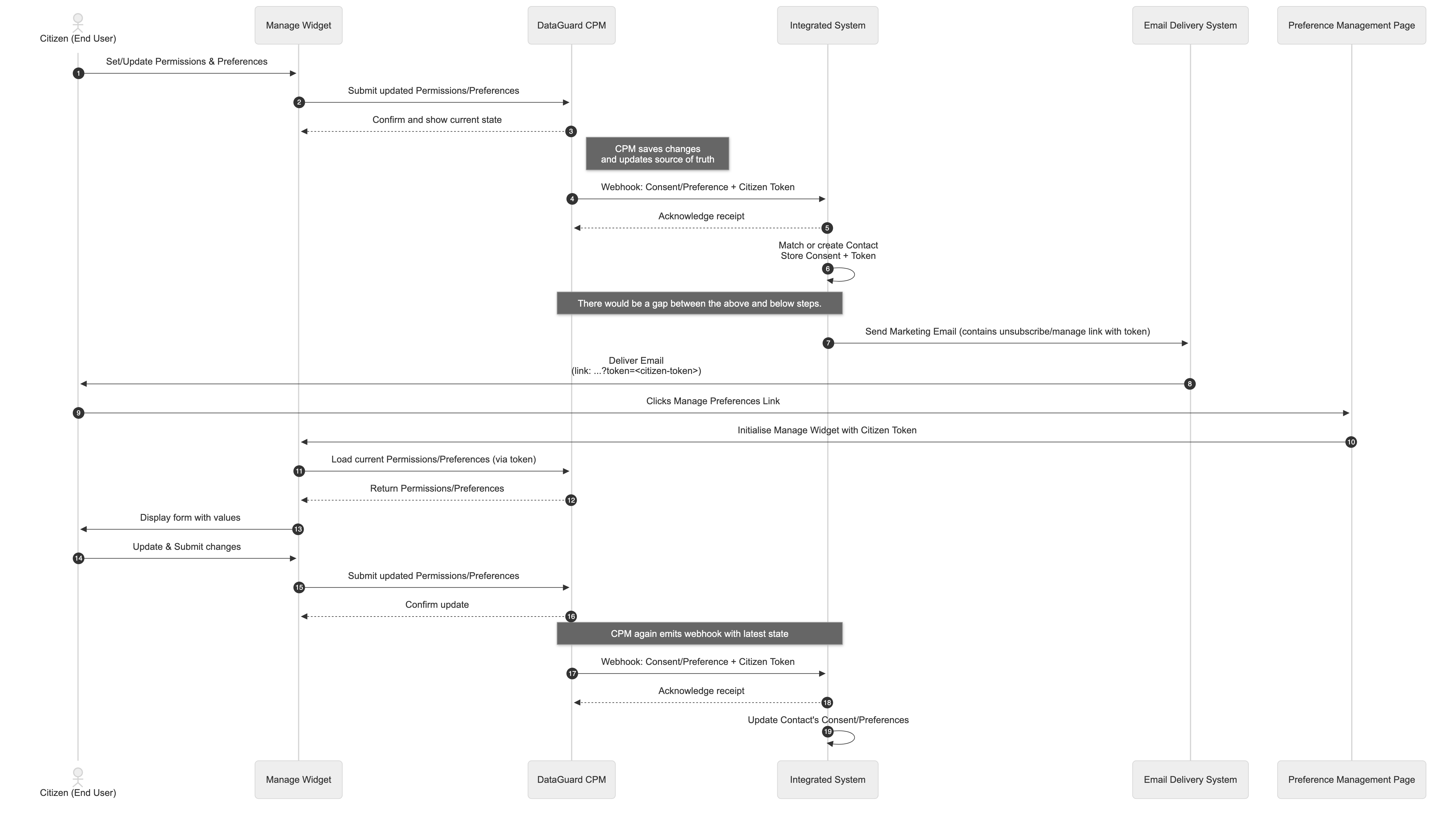 This approach ensures that CPM remains the source of truth for consent and preference history while preventing duplicate updates triggered by webhook notifications.
